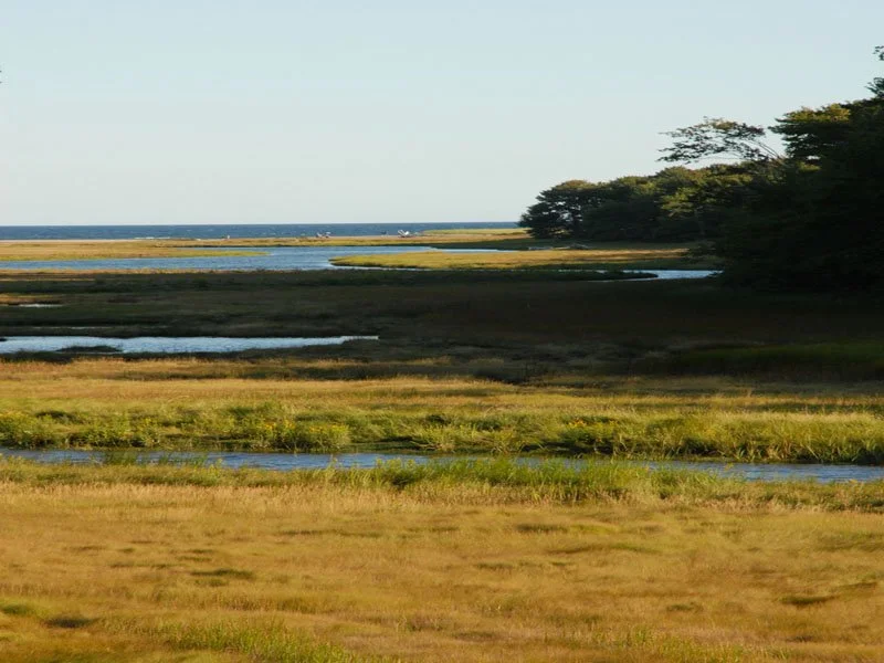 Boardwalk trails wind through salt marshes and woods with scenic views and great birdwatching opportunities.